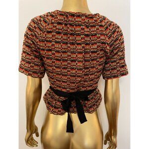 Anthropologie Elevenses Short Sleeve Button Blazer Bow Belted Y2K Cottagecore