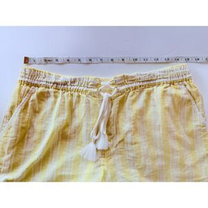 Anthropologie Elevenses Tasseled Dobby Tie Waist Shorts in Yellow & White Stripe