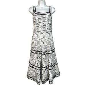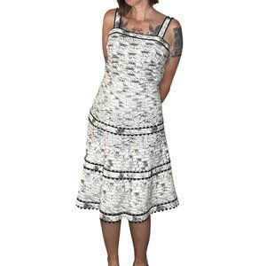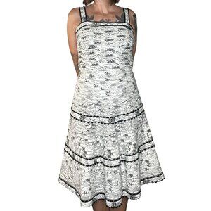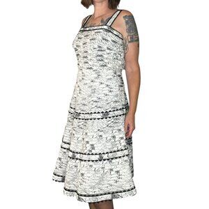 Anthropologie Elevenses Vintage Midi Sun Dress Retro Fit Flare White Black S/M