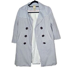 Anthropologie Elevenses Wm’s Sz 6 Blue White Stripe Cotton Bell Sleeves Pea Coat