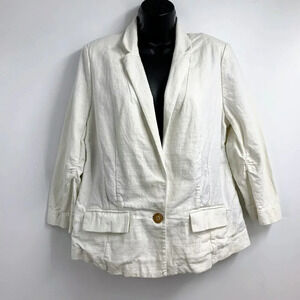 Anthropologie Elevenses Women's Cropped 1 Button Cotton Blazer SIze 12