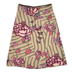 Anthropologie Elevenses Y2K Midi Skirt Size 2 Tan Pink Floral Butterfly Striped