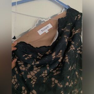 Anthropologie Eliatt Green/Blue Ombre One-Shoulder Sheer Lace Side-Slit Dress