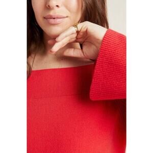 Anthropologie Elise Off Shoulder Bell Sleeve Tunic Sweater Red Small Holiday