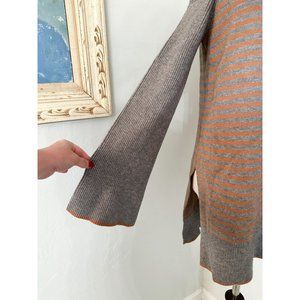 Tags not description: Anthro, ribbed, striped, off the shoulder, boat neck, pullover, side slits, tunic, casual, comfy, business casual, fall sweater, cozy, classic