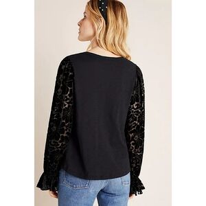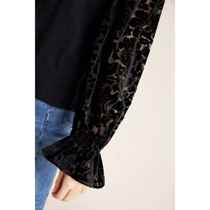 Anthropologie Elisha Puff-Sleeved Velvet Burnout Top