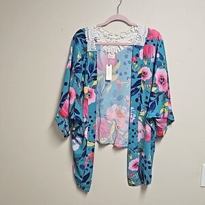 Details: Elizabeth Gillett Collection by Anthropologie lace detail kimono blue, pink floral