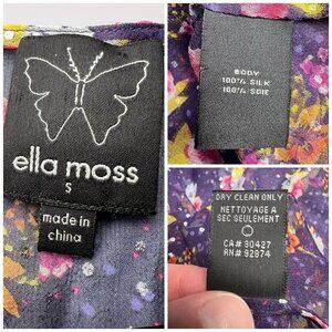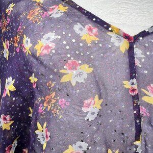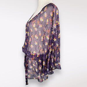 Anthropologie Ella Moss Floral Print 100% Silk Sheer V-Neck Tunic Blouse S