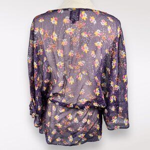 Ella Moss Floral Print 100% Silk Sheer V-Neck Tunic Blouse