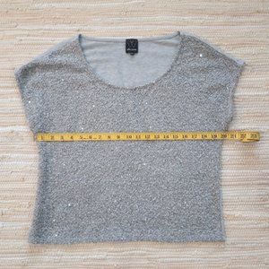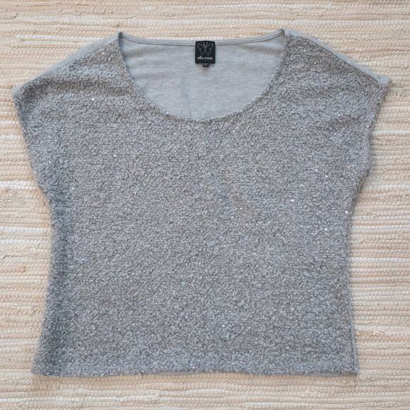Anthropologie Ella Moss Silver Grey Sequin Knit Top Size S EUC