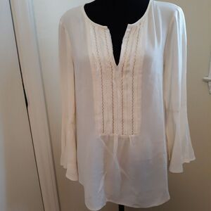 Anthropologie Ella Moss Women’s Ivory Top Embroidered Bell Sleeve Blouse M