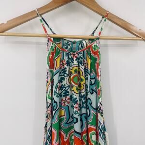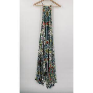 Anthropologie Ella Printed Halter Maxi Dress High Low Hanky Hem A Line XS/S