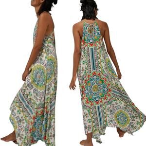 Anthropologie Ella Printed Halter Maxi Dress High Low Hanky Hem A Line