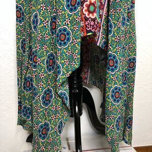 Anthropologie Ella halter handkerchief maxi dress. Pullover style with halter neckline. Ties at back neckline. Asymmetrical handkerchief hemline. Mixed floral patters. Size XS / Small. Excellent preowned conditon. 100% viscose. Machine wash.