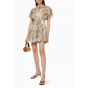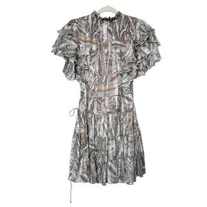 Anthropologie Elliatt Seraphina Mini Dress Boho Ruffle White Tan Brown Sz M