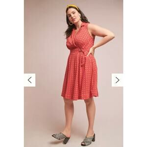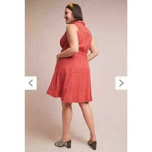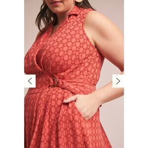 Anthropologie Elm Collared Dress 16W Midi Eyelet Burnt Orange Belted Sleeveless