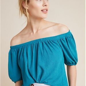 Anthropologie Elodie Turquoise Off Shoulder Top