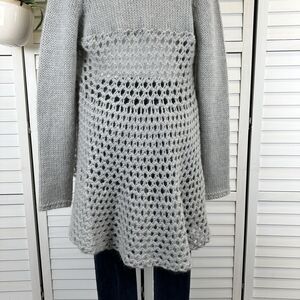 Anthropologie Elsamanda Italy Gray Open Knit Cardigan Sweater Mohair Wool Size L