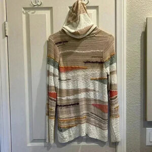 Anthropologie Elvra Hoodie Pullover Knit Sweater Neutral Geometric Boho Sz M