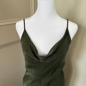 Anthropologie Elyse Bias Slip Dress Women’s Small Moss Green Cowl Neck