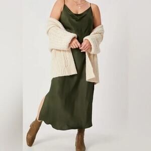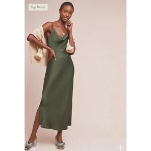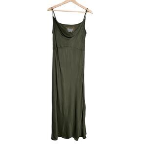 Anthropologie Elyse Luxe Bias Cut Slip Dress Midi Y2K | Moss Green | SZ XL
