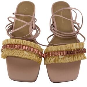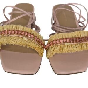 Anthropologie Embellished Tie Up Pink/Rose Raffia Square Toe Sandals New in Box