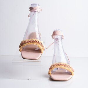 Anthropologie Embellished Tie Up Raffia Sandals Pink Rose EU 37 US 6.5 7 New