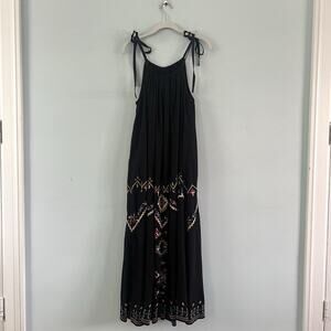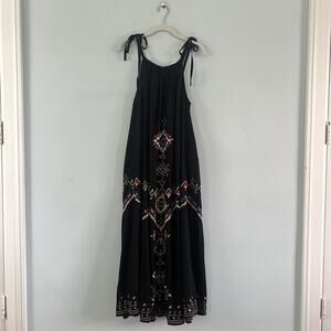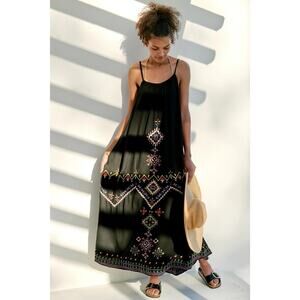Anthropologie Embroidered Black Geometric Motif Sleeveless Relaxed Maxi Dress