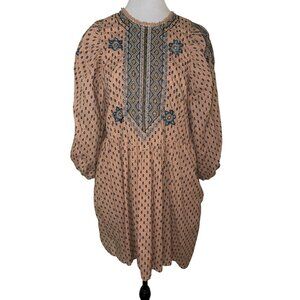 Anthropologie Embroidered Cotton Boho Lined Tunic Mini Dress Size M