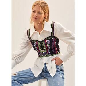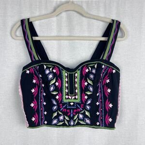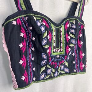 Anthropologie Embroidered Crop Top Artsy Boho Festival Folk Summer Southwestern