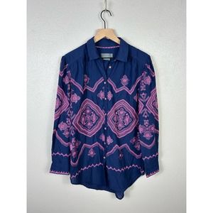 Anthropologie Embroidered Relaxed Button Down Shirt