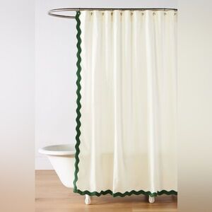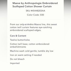 Anthropologie Embroidered Scalloped Shower Curtain NWT