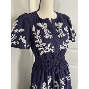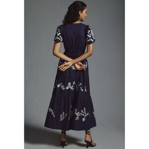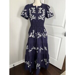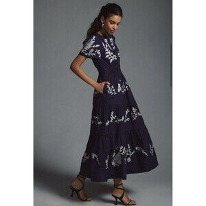 Anthropologie Embroidered Somerset Maxi Dress Navy Sz Small EUC