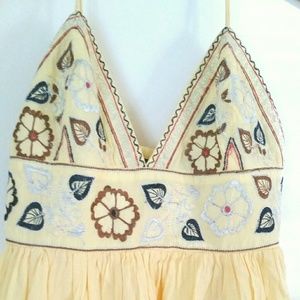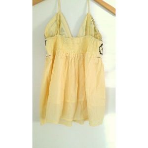 This pretty yellow handstiched embroidered top makes this the perfrct addition to brighten up your summer wardrobe. Just the right amount of color to pair perfectly with cutoffs, jeans or skirts. Add a pair of your favorite sandals and shorts and you’re ready to go! In like new condition.