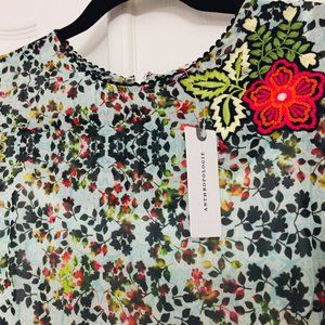 NWT Anthropologie embroidered tunic dress, Size 2 , Just has a few loose threads on the embroidery as shown in the last picture. Can't really see it unless you look very closely