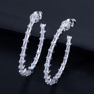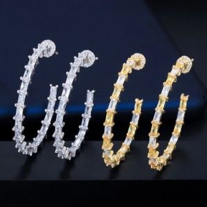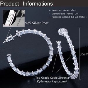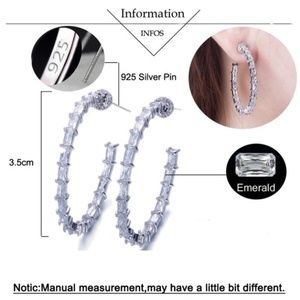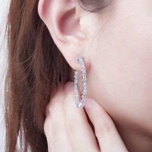Emerald cut Round Big Hoops Earrings Eternity Double inlay Exposed Stone Side gallery Setting incrusted Inlay facing forward VVS clarity lab Diamond Earrings pin closure dangle hoop infinity loop