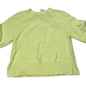 Anthropologie Emily Medium Green 100% Cotton Sweater Tie at Neck Back.
