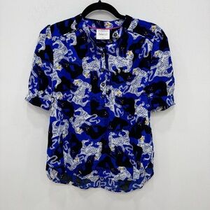 The Art of Anthropologie featuring Emily Isabella Robina Tiger Panther Blouse blue white black Sz XS ladies button down shirt top