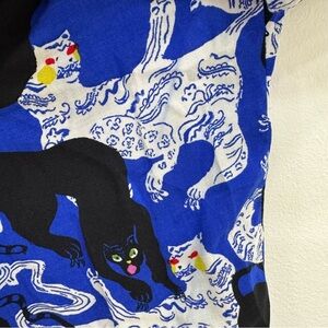 The Art of Anthropologie featuring Emily Isabella Robina Tiger Panther Blouse blue white black Sz XS ladies button down shirt top