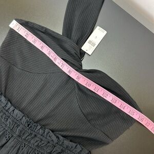 Anthropologie En Saison Black One Shoulder Camilla Jumpsuit M Eyelet Wide Leg