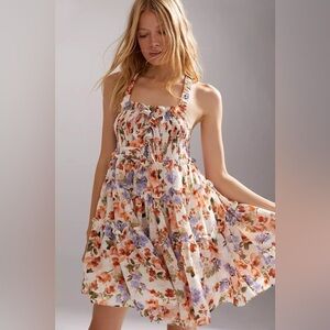 Anthropologie En Saison Floral Tiered Smocked Mini Dress Size XS NEW