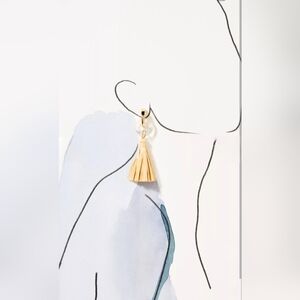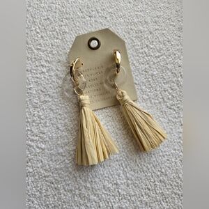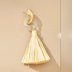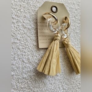 Anthropologie, Enamel Ring Tassel Drop Earrings, Gold/Clear/Raffia - NEW!!