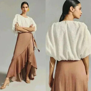 Anthropologie Endless Rose Cinched Blouse Size XS in White NWOT