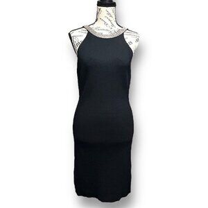 Anthropologie Endless Rose M Black Knit Rhinestone Trim Wedding Guest Mini Dress