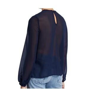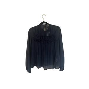 Anthropologie Endless Rose Sheer Navy Pleated Blouse w/ Lace Detail, XS