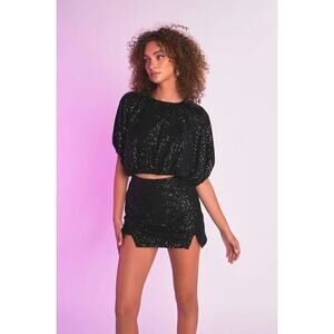 Anthropologie Endless Rose Woman Black Double Cutout Sequins Short, Size…
