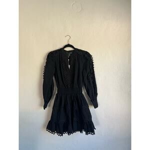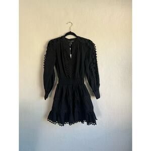 Anthropologie Endless Rose Woman Black Long Sleeve Lace Trim Mini Dress…