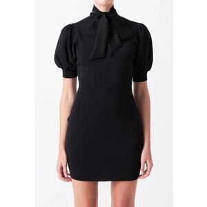 Endless Rose Woman Black SHEEN BOW TIE KNIT MINI DRESS, Size Medium