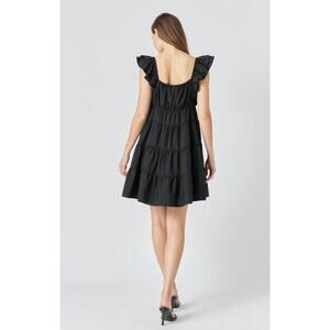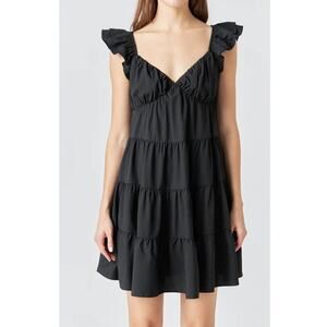 Anthropologie Endless Rose Woman Black Tiered Mini Dress, Size Medium