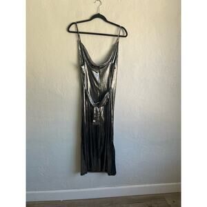 Anthropologie Endless Rose Woman Silver WaistWith Slip Midi Dress, Size …